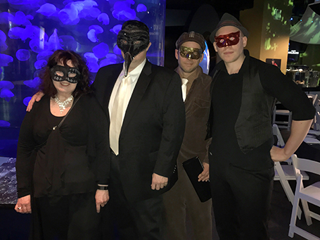 There were 250 human guests spread out among thousands of sea creatures at our masquerade mafia murder mystery in the Vancouver Aquarium! What a setting for a Venetian themed masquerade party with a modern mafia twist! The Godfather was there with 10 of his family, including his jealous brother, his orphaned niece, his sexy Moll, his Consigliere and Bruglione... everyone close to him was in attendance to remember the murders of his sister and brother-in-law on the anniversary of their deaths. One of them was also there for revenge though, and before the night was through there would be more deaths to come in an attempt to take over the mob and the spot at the top it of it all!